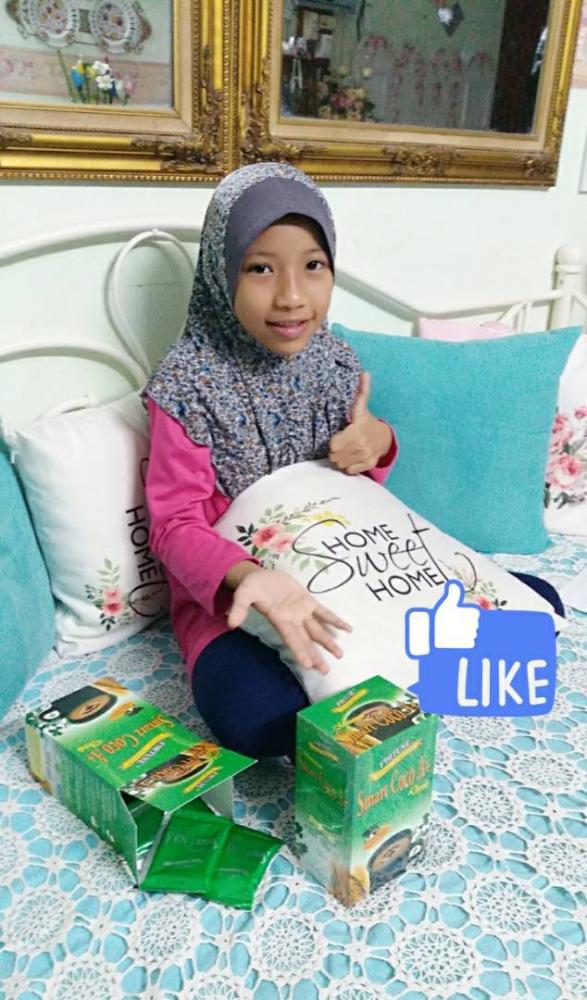 ZETI AMEERAH SK SAUJANA UTAMA SUNGAI BULOH SELANGOR ![]() | Assalamualaikum w.b.t Nama saya Zati Ameerah Syaheeda binti Sahrul, murid Sekolah Kebangsaan Saujana Utama dan In Sya Allah tahun 2018 akan menjadi pelajar Sekolah Berasrama Penuh Integrasi Gombak setelah mendapat 6 A di dalam Ujian Pencapaian Sekolah Rendah (UPSR), MUMTAZ dalam peperiksaan Penilaian Sekolah Rendah Agama (PSRA) dan tahun lepas 8A dalam Ujian Penilaian Kelas Kafa(UPKK). Alhamdulillah kerana Allah s.w.t memberikan hidayah kepada kedua orang tua saya untuk menukar minuman tenaga berasaskan coklat kepada Smart Coco A+. Kami sekeluarga telah mula mengamalkan Smart Coco A+ sejak akhir 2014 kerana semasa itu kakak saya bakal mengambil UPSR pada 2015. Beliau juga dapat keputusan yang cemerlang iaitu 5A dalam UPSR dan Mumtaz dalam PSRA. Kini, kakak saya sedang belajar di SBPI Tun Abdul Razak. Kandungan asas Smart Coco A+ amat berkhasiat untuk perkembangan minda saya kerana terkandung sebahagian dari makanan Sunnah seperti kismis, madu dan tamar. Saya telah diberikan Smart Coco A+ setiap hari sebagai sarapan sebelum bertolak ke sekolah. Kesannya, saya jarang berasa lapar atau kepenatan bahkan berasa lebih bertenaga dan berfokus. Selain daripada itu, saya dapat mengingat dan memahami pelajaran yang diajar guru dengan lebih cemerlang. Saya rasa amat bersyukur kerana produk Smart Coco A+ menjadi pemangkin kepada kecerdasan minda kami sekeluarga. Apa yang lucunya, setiap kali kakak saya ingin pulang ke asrama, telah menjadi amalan dia mesti memesan ibu atau bapa kami membekalkannya sekotak dua Smart Coco A+. Saya juga suka minum Smart Coco A+ dengan cara sebungkus dibancuh dengan air dan sebungkus lagi ditabur di atasnya seperti minum Milo Dinosur. Pengalaman keluarga kami ini saya kongsikan agar sahabat-sahabat yang sedang belajar mencuba dan mengamalkan produk ini. Alhamdulillah, Terima Kasih SmartCoco A+. |
